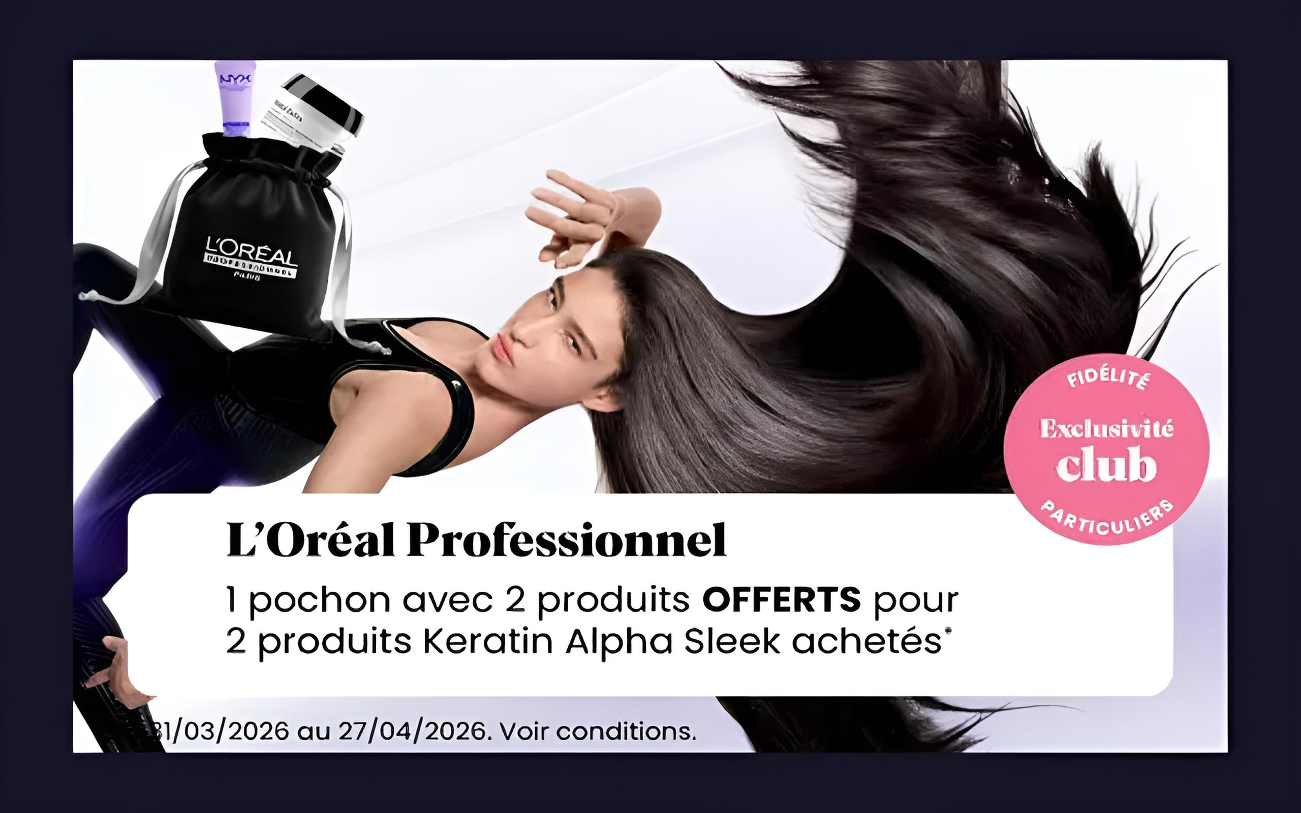 1 pochon avec 2 produits OFFERTS pour 2 produits Keratin Alpha Sleek achetés*