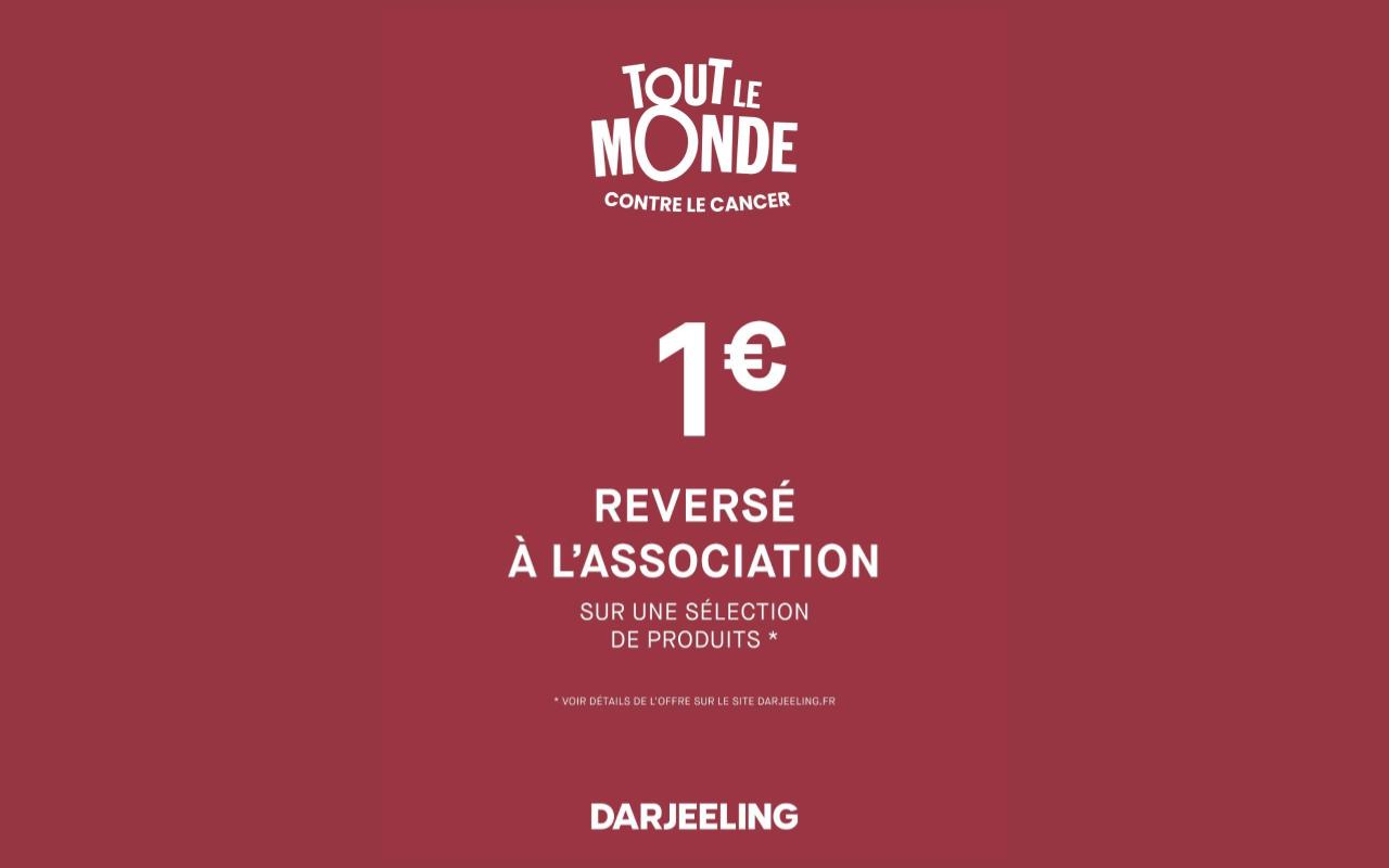 Darjeeling s’engage à reverser 1€ à l’association Tout le Monde Contre Le Cancer pour tout achat d’un produit parmi une sélection d'articles*