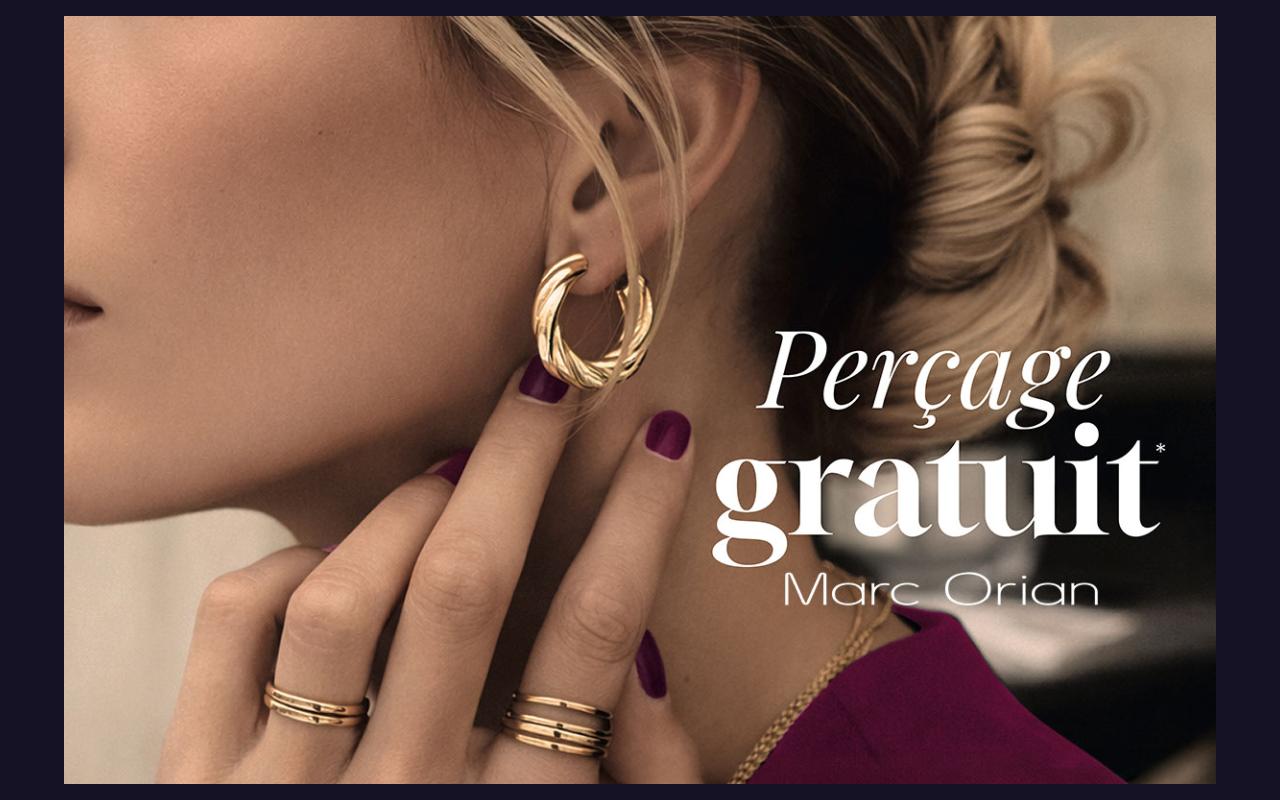 *Acte de perçage gratuit réalisé uniquement en bijouterie, pour l’achat le jour même de boucles de perçage d’oreilles parmi une sélection disponible en magasin.