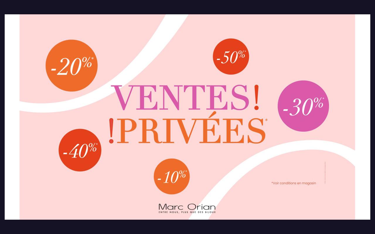 *Ventes privées réservées aux clients titulaires d'un compte fidélité Marc Orian avant le début des Ventes Privées.